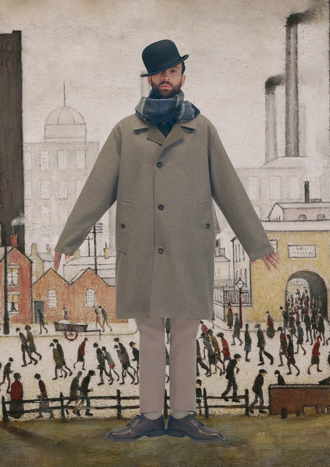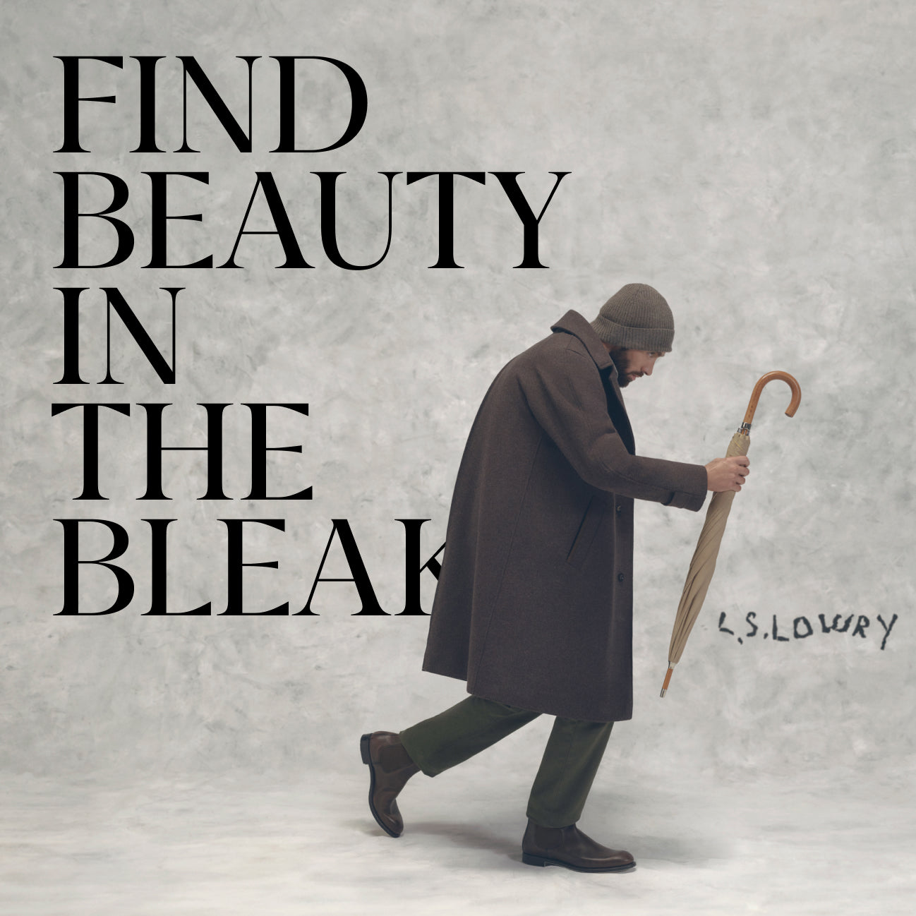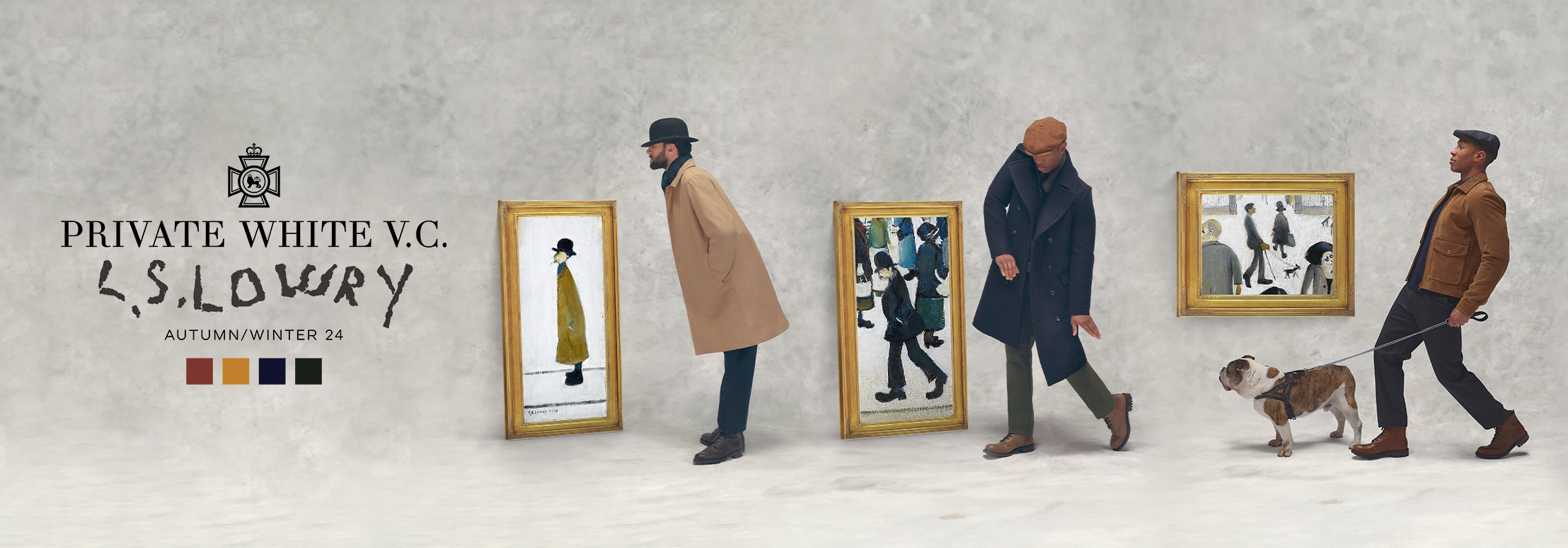 ‘Cold’, ‘wet’, ‘gloomy’, ‘bleak’. Men hunched over as they trudge past looming industrial buildings… Not the usual scenes one might think of when imagining an Autumn/Winter collection launch. But The Private White V.C. collection is no ordinary campaign. This is a tribute to a Manchester icon – L.S. Lowry. Lowry shone a light on the reality of Northern working life. But while on first glance the hunched figures and grey palette of Lowry’s paintings could be seen as bleak, a deeper look reveals them to be pulsing with life, emotion and hidden narrative.