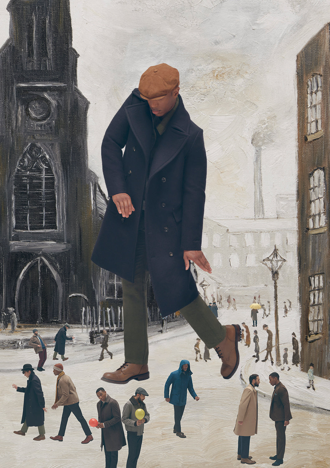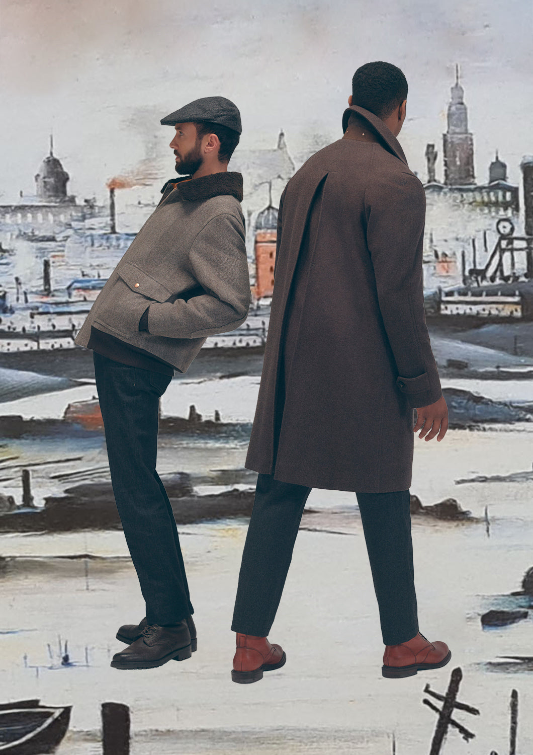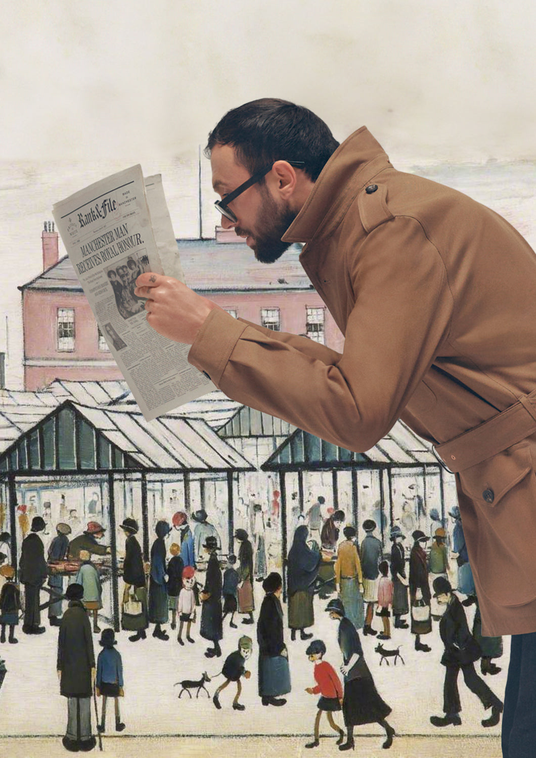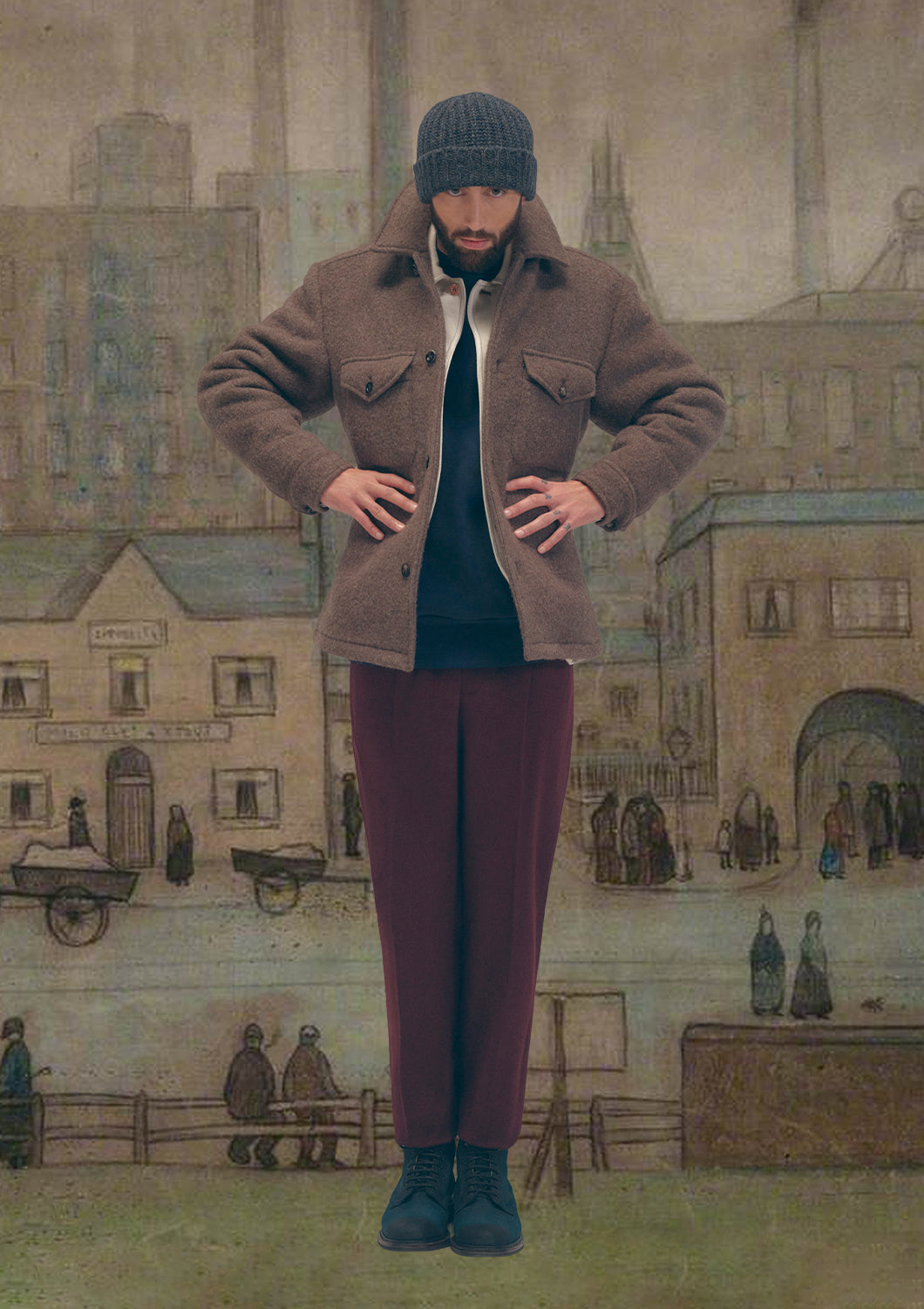 ‘Cold’, ‘wet’, ‘gloomy’, ‘bleak’. Men hunched over as they trudge past looming industrial buildings… Not the usual scenes one might think of when imagining an Autumn/Winter collection launch. But The Private White V.C. collection is no ordinary campaign. This is a tribute to a Manchester icon – L.S. Lowry. Lowry shone a light on the reality of Northern working life. But while on first glance the hunched figures and grey palette of Lowry’s paintings could be seen as bleak, a deeper look reveals them to be pulsing with life, emotion and hidden narrative.