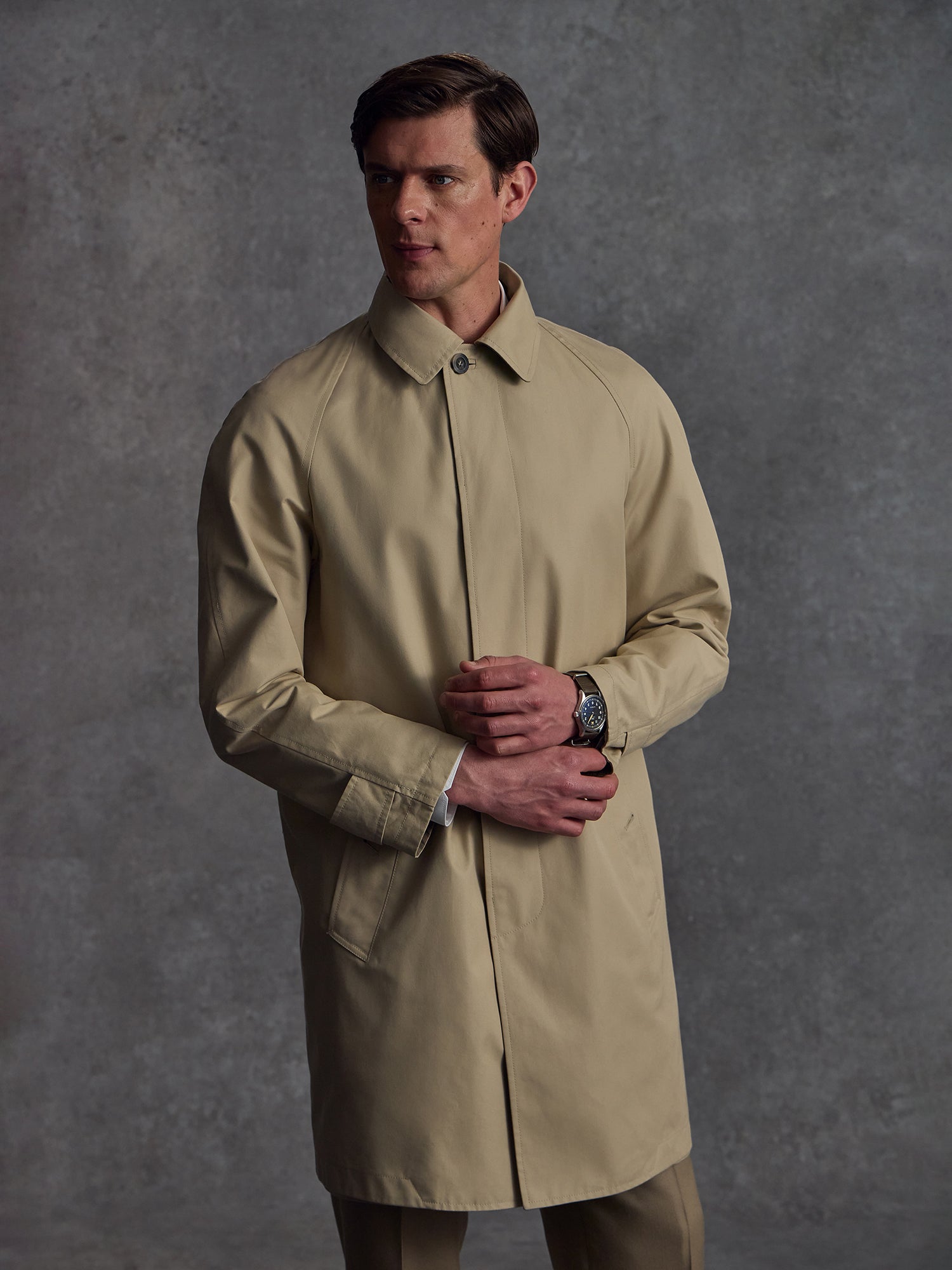 Inspired by the world of classic British espionage, The Double Agent is a masterfully reimagined raincoat that blends timeless British tailoring with modern versatility. Drawing from the understated elegance of George Smiley in 'Tinker Tailor Soldier Spy', as portrayed by Gary Oldman, this fully reversible coat is built for adaptability - seamlessly shifting between identities, just like its namesake. A true British rainwear classic, crafted in Manchester for over a century, it embodies the refined stealth, quiet authority, and unshakable sophistication of espionage’s golden age.